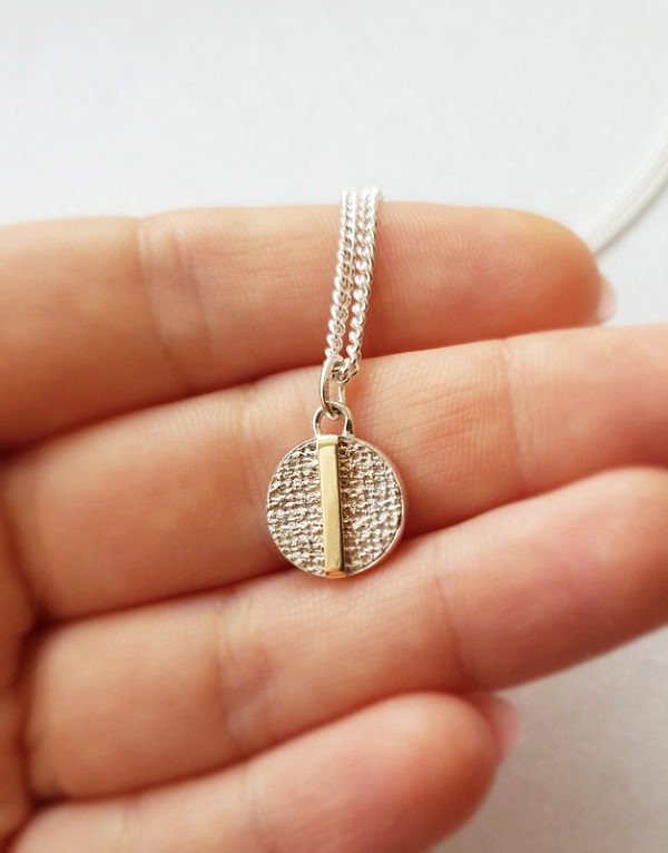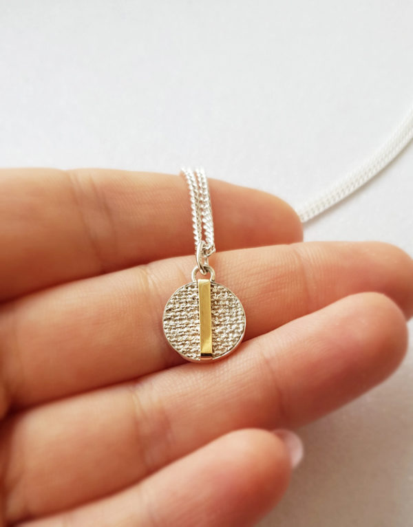 Minimalist, eye catching pendant necklace for woman. It is from my “Fabric” collection to suit fabric texture ring and earrings.