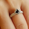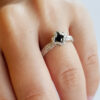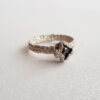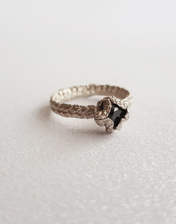 RINGSUnusual OOAK silver solitaire ring with black cubic zirconia. Handmade crochet with real thread and then turned to silver.